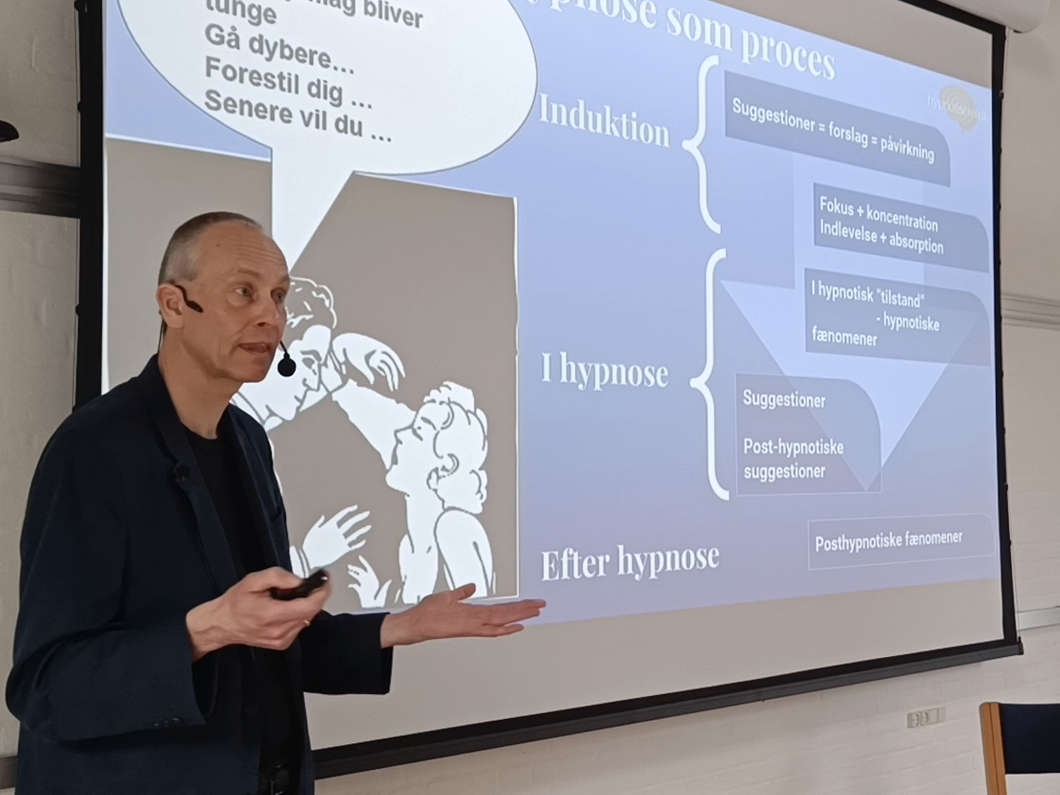 Underholdende og lærerigt foredrag eller workshop, hvor hypnose afmystificeres som påvirkning og følelsen af virkelighed.